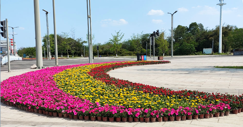 按照市委、市政府下達(dá)的氛圍營(yíng)造任務(wù),興綠園林公司高效組織、上下聯(lián)動(dòng),經(jīng)過(guò)多次現(xiàn)場(chǎng)踏勘,制定了鮮花擺放設(shè)計(jì)方案。以會(huì)展中心外圍及酒谷大道隔離帶、街邊綠地為重點(diǎn),采用栽植紅色和黃色的鮮花,突出色彩對(duì)比,形成視覺(jué)上的沖擊,營(yíng)造更好的感官體驗(yàn),確保酒博會(huì)期間管護(hù)范圍內(nèi)的植物生機(jī)盎然、整潔美觀。
