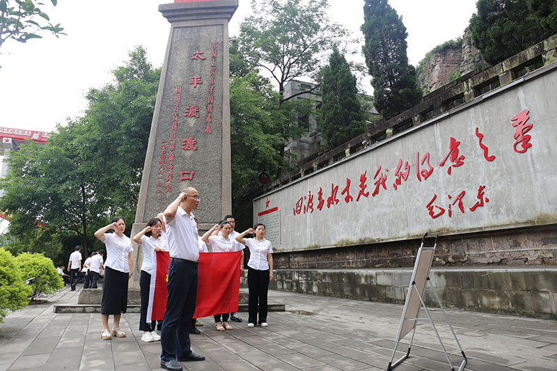 隨后,走訪古藺太平渡長征老街,一處處歷史厚重的紅軍舊居呈現(xiàn)出當(dāng)年紅軍長征不怕任何艱難險(xiǎn)阻,不惜付出一切犧牲的偉大革命精神。瞻仰太平渡渡口紀(jì)念碑,重溫入黨誓詞,面對(duì)鮮紅的黨旗宣誓,傳承偉大的長征精神,做新時(shí)代合格共產(chǎn)黨員。